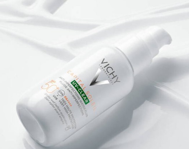 • Kem chống nắng Vichy Capital Soleil UV-Clear SPF50: đây là loại kem chống nắng dạng sữa, chống nắng phổ rộng, kết cấu thẩm thấu nhanh, hỗ trợ làm giảm các khuyết điểm trên da dầu mụn